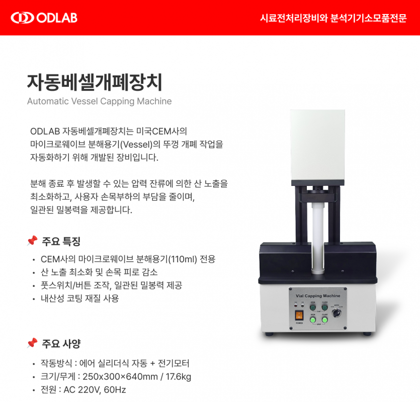 [오디랩 신제품 안내] 자동 베셀 개폐 장치 & 석영 고온 가열판 출시 / ICP-MS Cone 카다로그까지!
