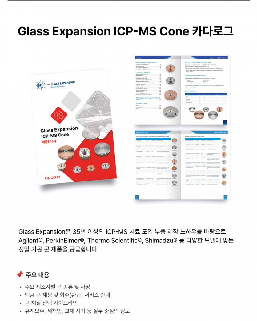 오디랩 - 시료전처리장비와 분석기기소모품 전문, 자동베셀개폐장치, 석영고온가열판, Glass Expansion ICP-MS Cone 카다로그