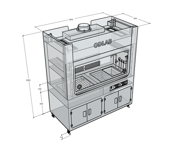 산과 유기용매의 작업을 할때 사용하는 흄 배출장치로 시료의 전처리, 샘플링, 세정시 발생하는 유해물질의 흄을 안전하게 배출하기 위해 만든 실험실용 흄후드장비이다.