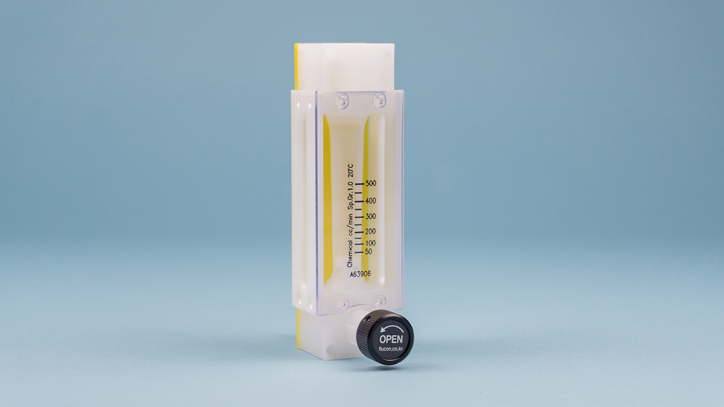 Flow can be adjusted by turning the handle below, and it can be connected to an electronic flowmeter for use.